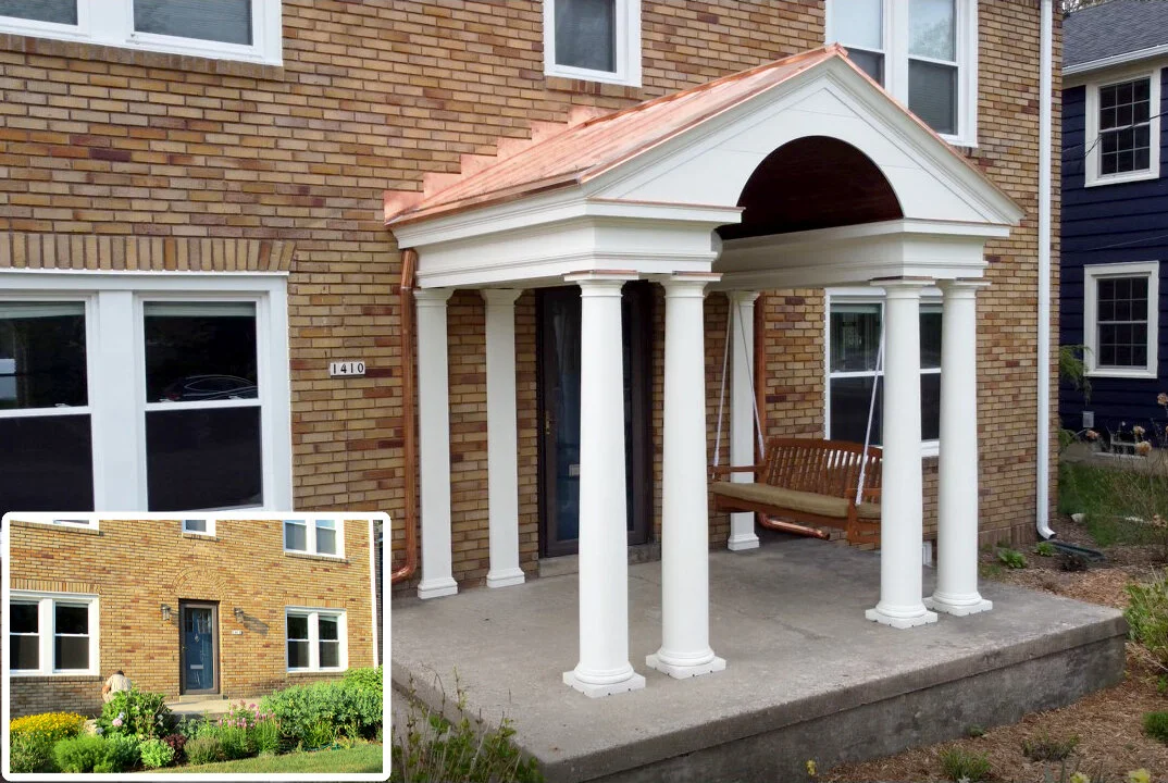These details can also apply to newly added porches or entryways. We want to give these areas the appearance of having been there since the beginning. It is very difficult to get newly constructed elements to look original when using mass-produced moldings of today.
