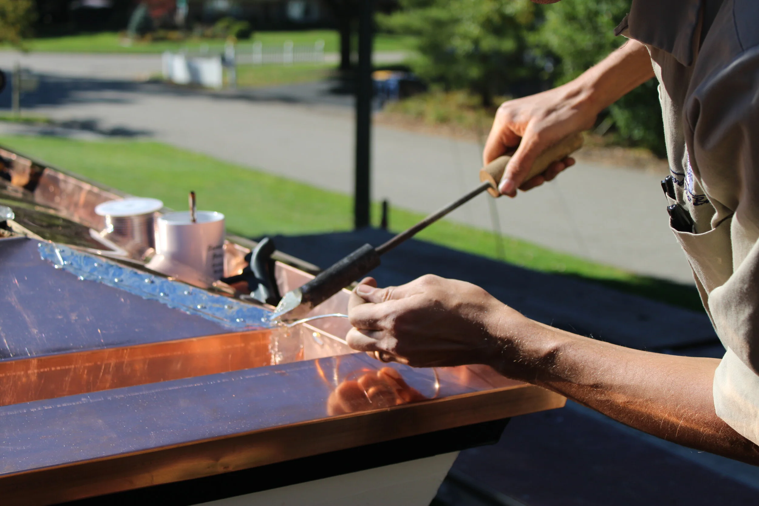 Expansion and contraction engineering: this may be the leading cause of leaking or failed gutters. Metal gutter liner lengths over 6 feet must be able to freely expand and contract separately from the wooden roof and gutter structure through a 150 degree thermal cycle. Gutters must be engineered to accommodate slip and expansion joints, and must be meticulously installed as a single misplaced fastener can cause a gutter to “self-destruct” in a matter of a few years.